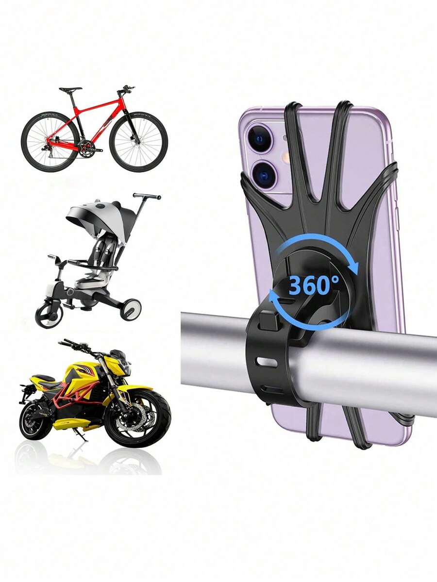 1pc Set (1pc Strap + 1pc Holder), 1pc, 360° Bike Phone Holder/(1pc Random Color Strap), 3pcs Strap, Suitable For 4.0-6.1 Inch Phones, Rotatable Silicone Bicycle Phone Holder