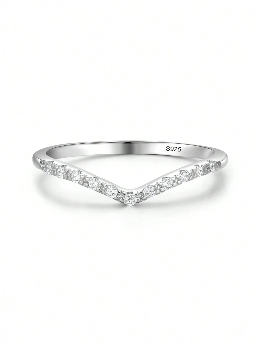 1pc 925 Sterling Silver Simple V Shape Stackable Rings For Women Statement Jewelry Gift