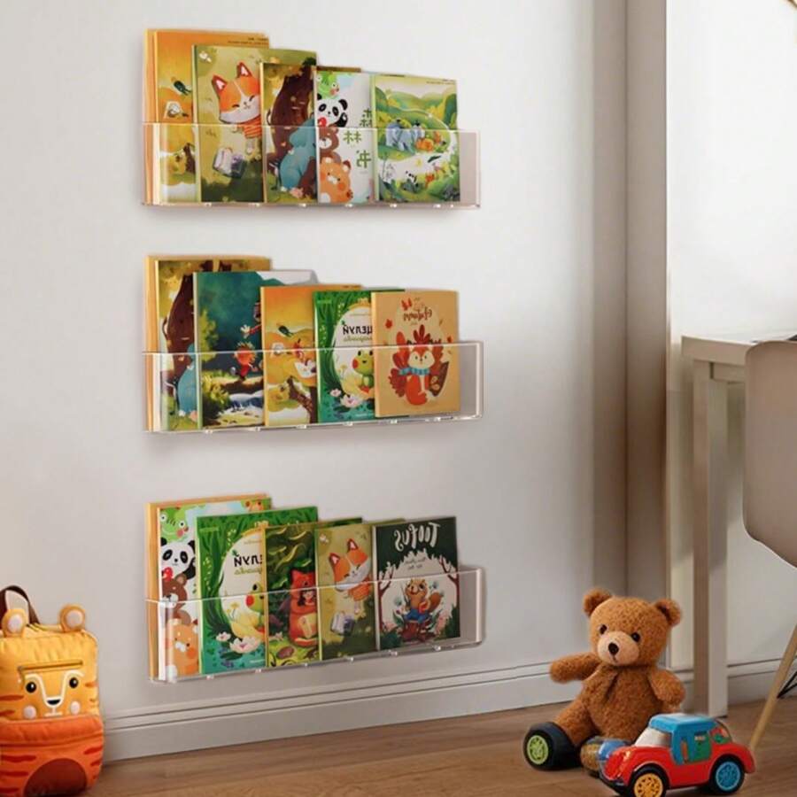 1pc Acrylic Wall Mounted Magazine Rack, Colorful Display Stand, No-Drill