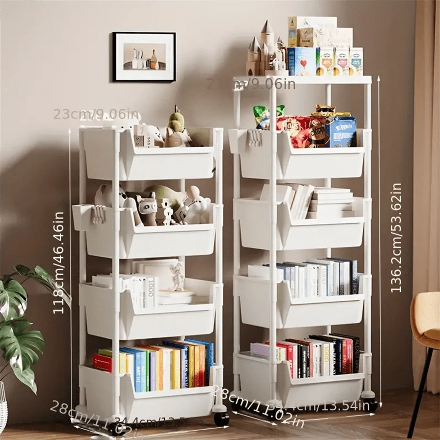 1pc Adjustable Multi-Tier Snack & Book Storage Cart, Plastic Material With Wheels, Double-Deck, For Home/Dorm Use