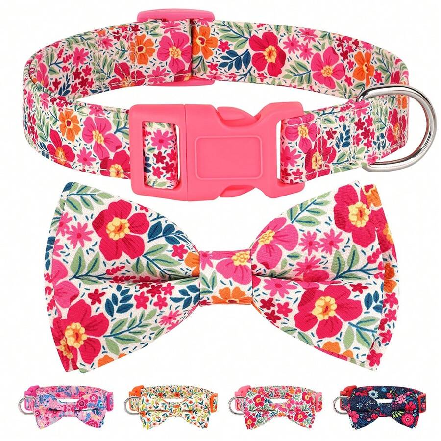 1pc Adjustable Nylon Printed Pet Collar With Bowknot For Cute Chihuahua, Teddy, Small & Medium Dogs