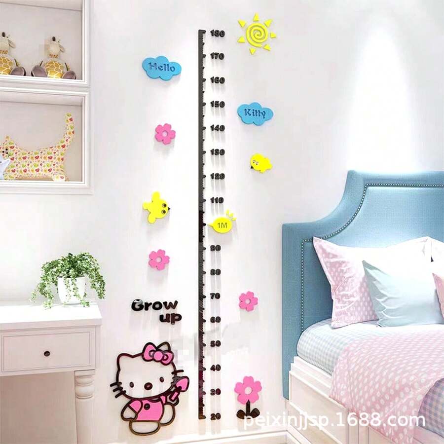 1pc Baby Height Measurement Sticker, 3D Wall Sticker Kindergarten Height Ruler, Children's Room Decorative Wall Sticker, Cartoon Removable Acrylic 3D Wall Decal Height Chart, Random Color