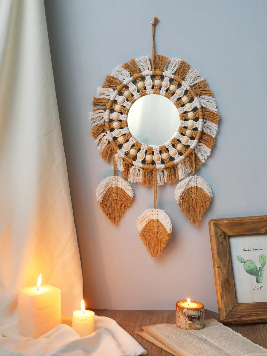 1pc Bead & Tassel Decor Macrame Wall Hanging