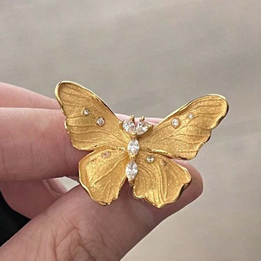 1pc Butterfly Ring Heavy Industry Brushed Point Diamond Ring
