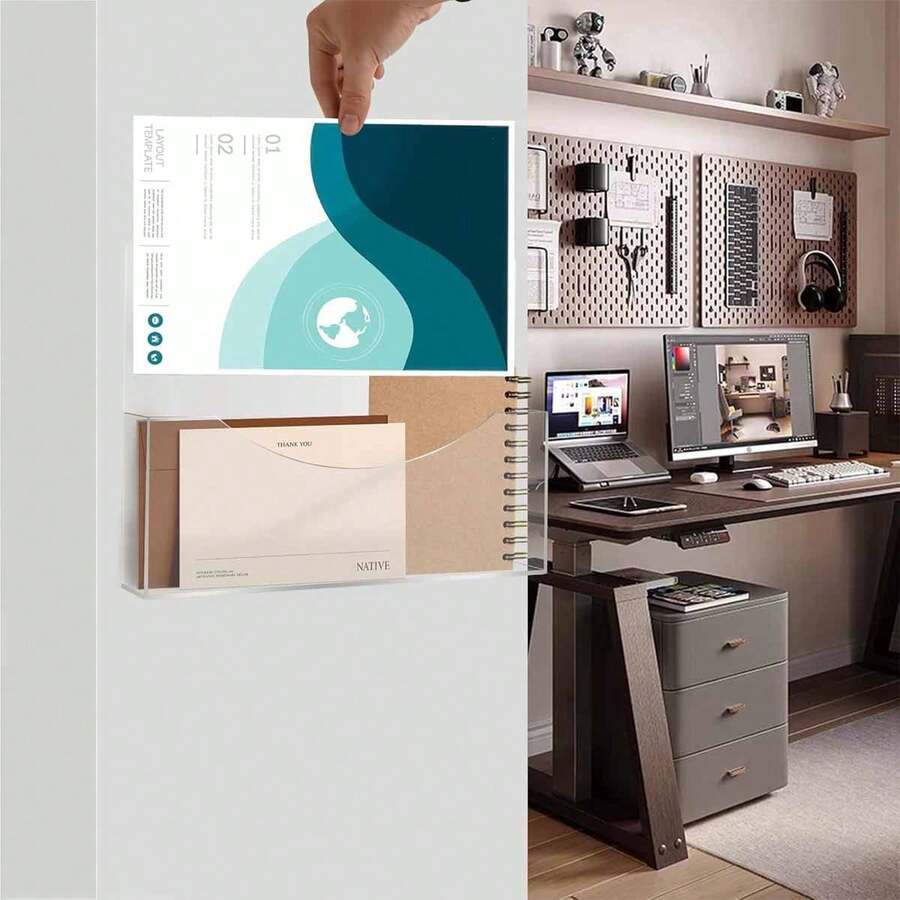 1pc Clear Acrylic Wall File Holder, Medical File Chart Rack With Open Side For Wall Mounting, Sturdy