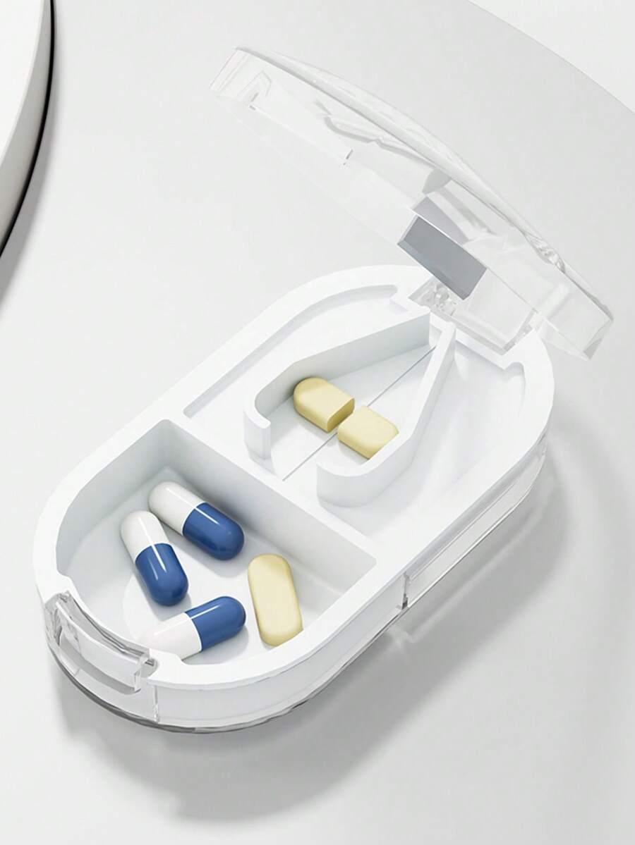 1pc Clear White Mini Pill Splitter & Storage Box With Dividers For Tablets, Portable Pill Container For Travel