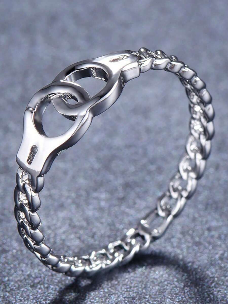 1pc Creative Fashionable Concise & Versatile Openwork Handcuffs Shaped Metal Ring Suitable For Women's Daily Wear