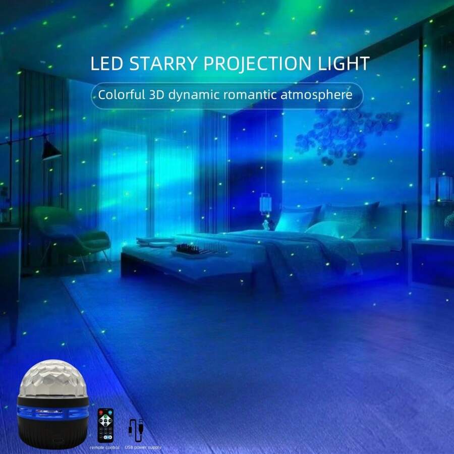 1pc Creative Northern Lights Projection Lamp, 7-Color Dynamic Wave Pattern, Galaxy Starry Sky Atmosphere Light, USB Powered DC5V, Remote Control, Couples Festival Gift, Family Gathering, Party Atmosphere Light