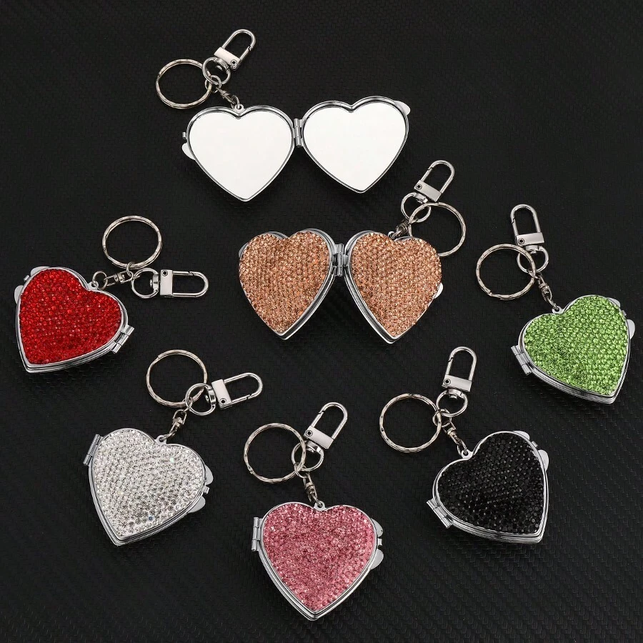 1pc Crystal Metal Heart Shaped Keychain Mirror Charm, Portable Compact Makeup Mirror Shiny Decor School Letter Car Accessories Cute Goth Y2k Halloween Accessories Teachers Day