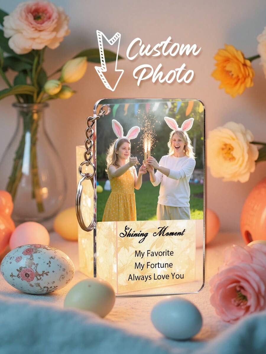 1pc Custom Easter Photo Keychain, Custom Easter Picture And Text Keychain Gift, Personalized Photo Keychain With Text, Custom Photos In Your Pocket Gift, Personalized Text Easter Acrylic Keychain In Your Pocket, Personalized Picture Keying