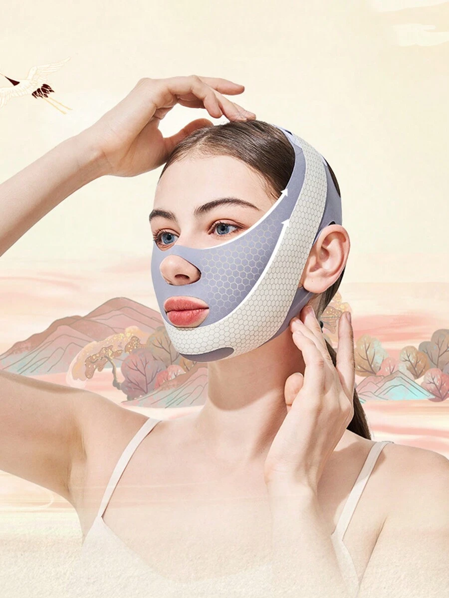 1pc Face Mask V-Line Chin Lift Strap, Soft Breathable Face Slimming Bandage For Double Chin, Reusable V-Shaped Face Lifting Miracle Mask