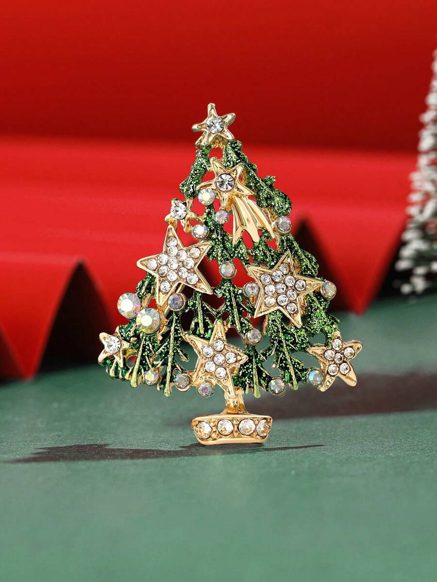 1pc Fashionable Rhinestone Christmas Tree Brooch Great For Christmas Day