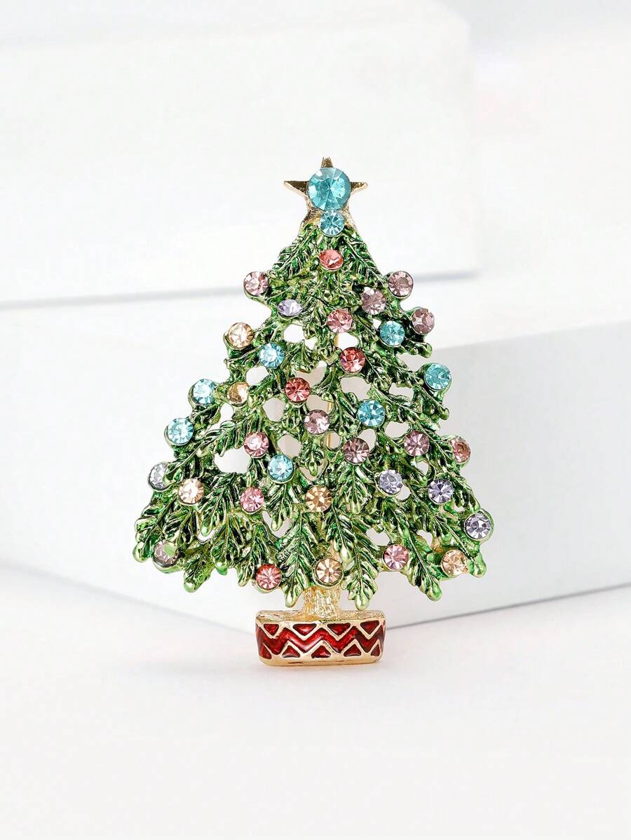1pc Fashionable Rhinestone Christmas Tree Shaped Brooch Suitable For Christmas Wearing