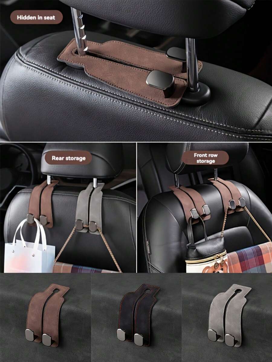 1pc Faux Fur Covered Metal Car Seat Back Hidden Multi-Functional Hook Decor Accessory