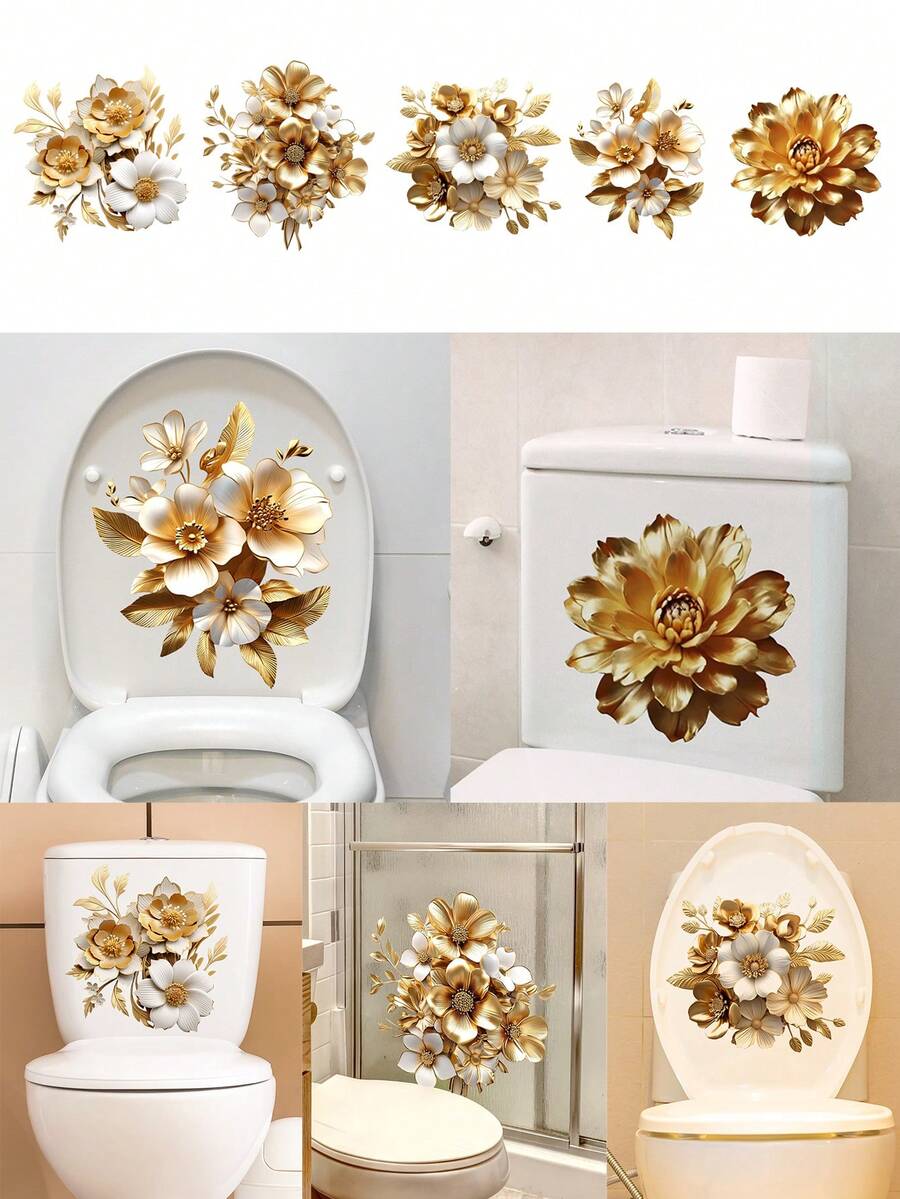 1pc Flower Decorative Toilet Sticker, Bi-Color Gold & White, Multi-Styles Available, Suitable For Various Scenarios Stickers Personalised Stickers