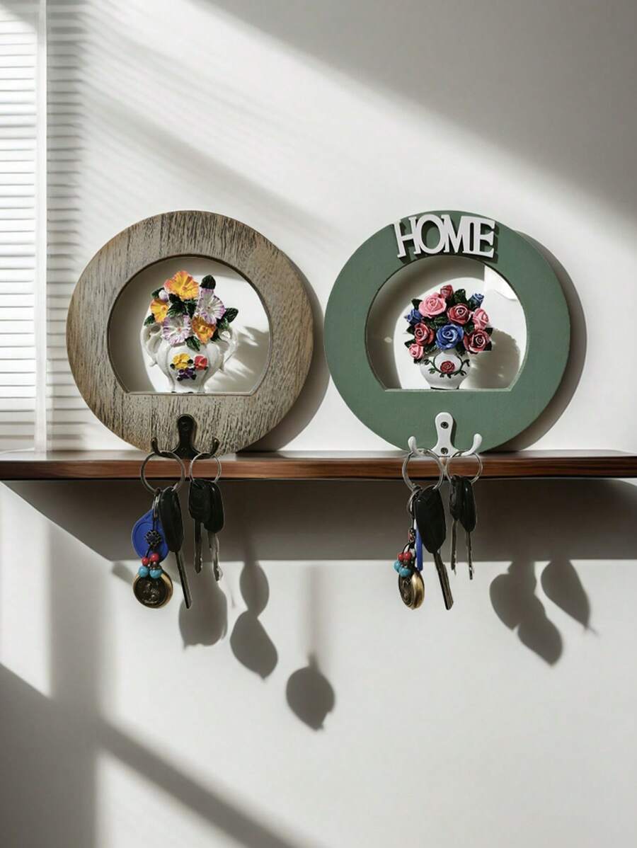 1pc Foyer Wall Mounted Key Holder With Hook Hanging Utensil Rack, Hook Installation: Space Saving Kitchen, Foyer, Bathroom, Home, Kitchen Accessory Storage Hook For Household Use
