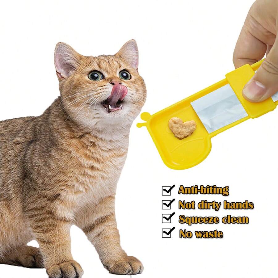 1pc Giraffe Shaped Cat Licking Spoon Food Squeezer, Single-Handed Pet Cat Snack Feeder, Yellow