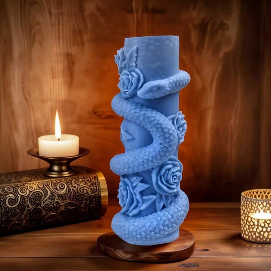 1pc Handmade Snake-Shaped Spiral Candle Holder & Essential Oil Diffuser, Silicone Mold For Cylinder Snake & Flower Design
