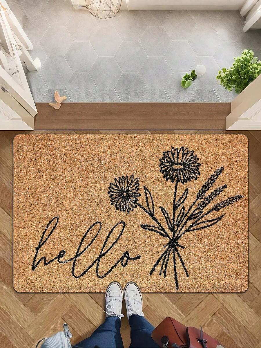 1pc "Hello" Welcome Mat - Non-Slip Polyester Fiber Doormat, Floral Pattern, Luxury Entrance Mat, Suitable For Home, Bathroom, Living Room - Machine Washable, Machine Dried, Bathroom Mat | Floral Pattern Mat | Polyester Fiber Mat, Welcome Mat
