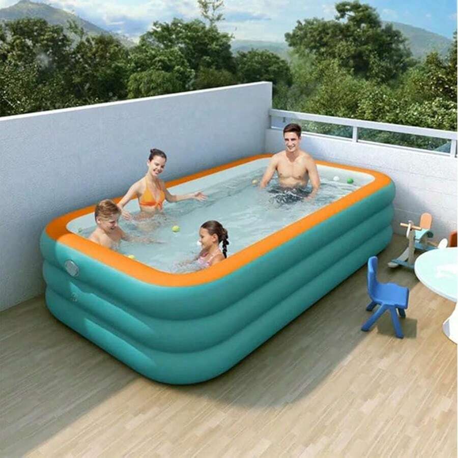 1pc Inflatable Sports Ocean Ball, Large Adult & Family Use, PVC Material, 3-Ring Design, Portable Foldable Swimming Pool, Square Shape, Blue, For Indoor/Outdoor Use, Summer, Beach Essentials, Beach Accessories, Pool Float