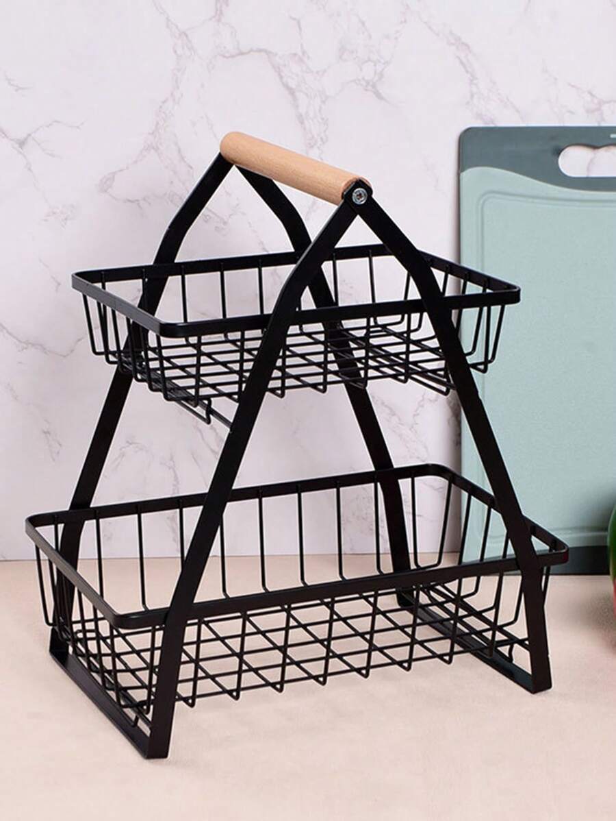 1pc Iron Foldable Double Layer Basket, Kitchen Fruit & Vegetable Storage Rack
