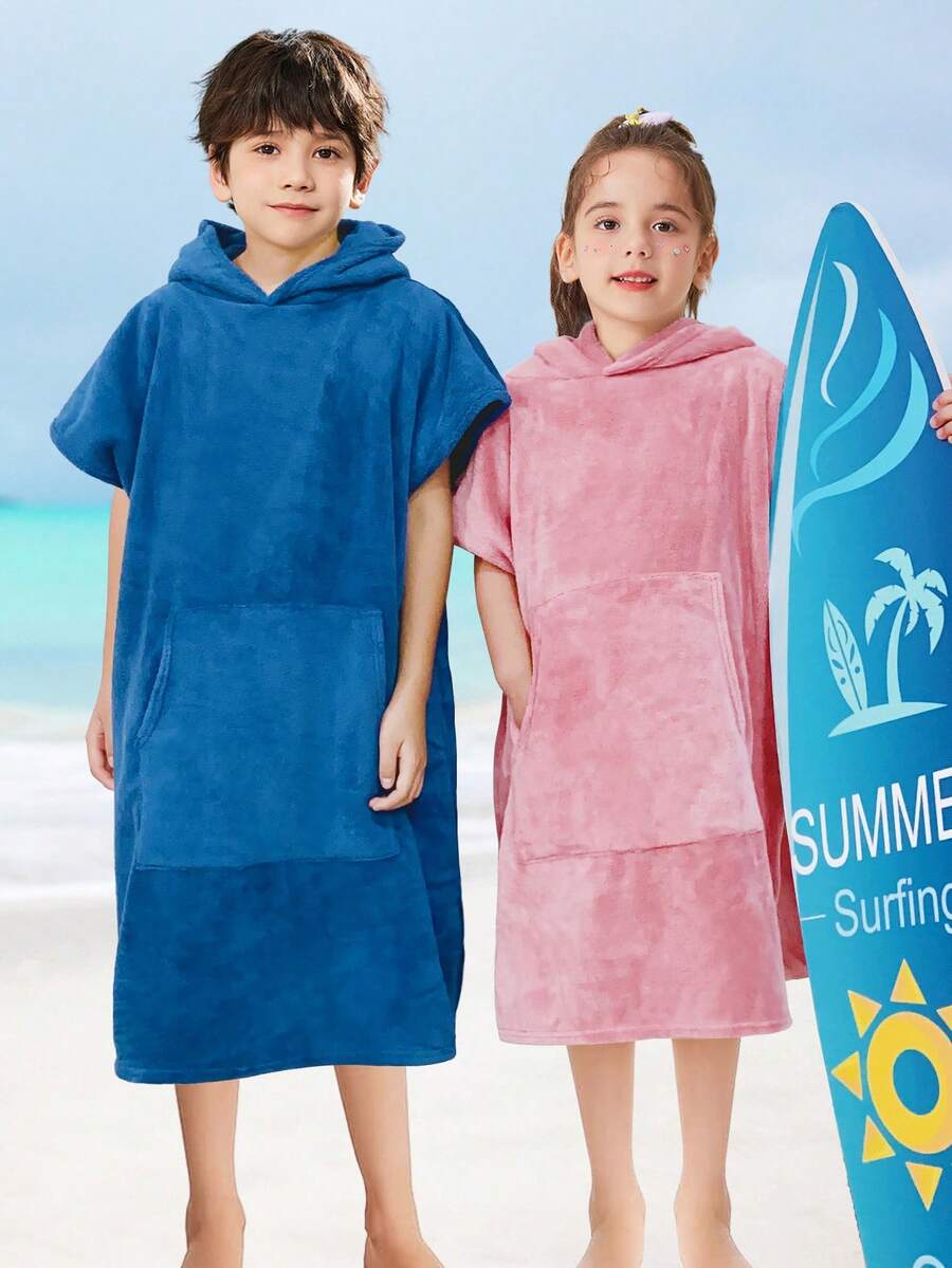 1pc Kids Hooded Bath Robe, Quick Dry Thick Soft Coral Fleece, Absorbent Bathrobe For Beach, Pool, Shower, Home Use