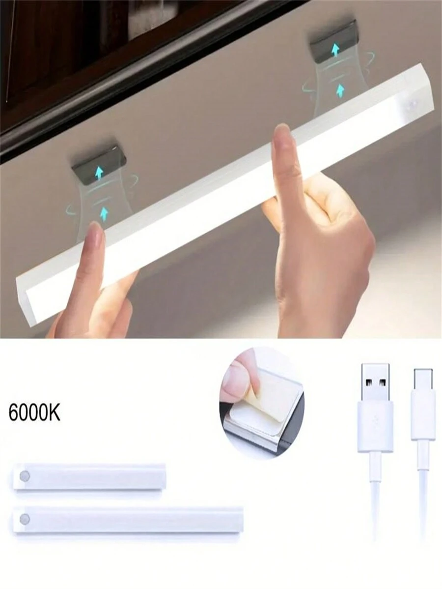 1pc LED Motion Sensor Light Strip, USB Rechargeable White Cabinet Closet Lighting, Magnetic Removable, Dimmable Under Cabinet Light, Suitable For Wardrobe, Cabinet, Stairway, Corridor (10/20/30cm: 200mAh/50cm: 350mAh)