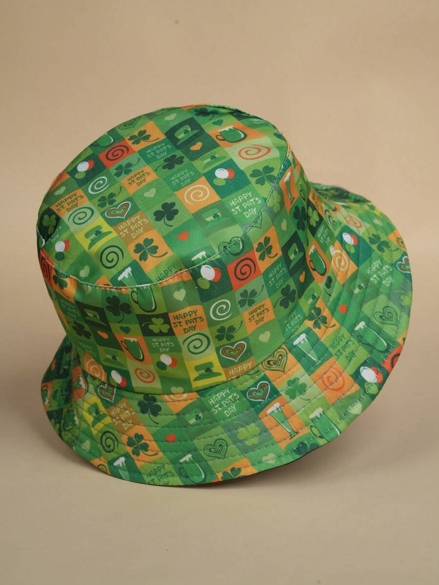 1pc Lucky Green Reversible Bucket Hat, Fashion