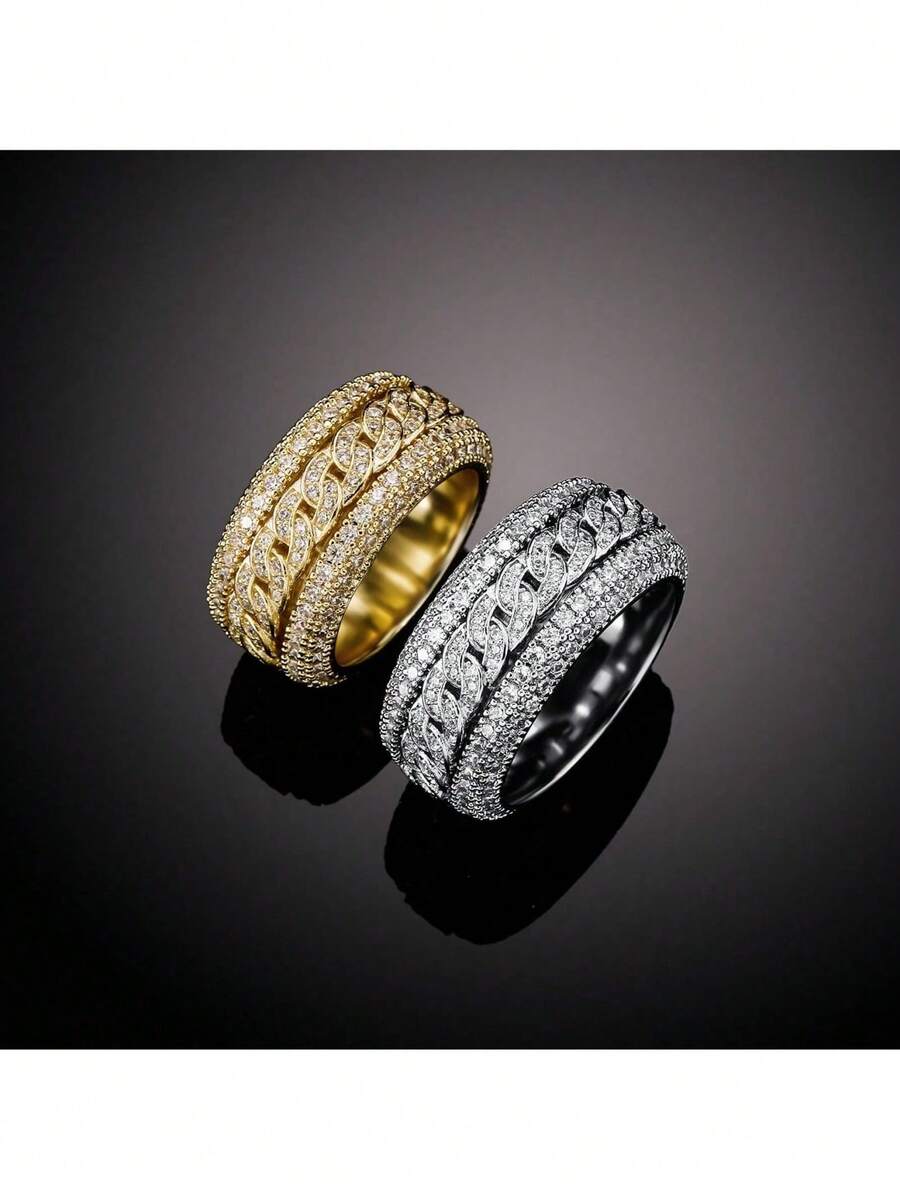 1pc Men's Rotating Finger Ring With Cubic Zirconia Inlay, Fashionable Glittering Design, Hip-Hop/Punk Minimalist Style, Suitable As Gift