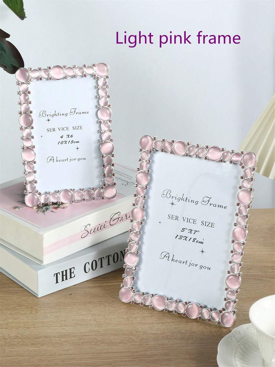 1pc Natural Pink Stone Picture Frame, Modern Style Plastic Material 6-Inch And 7-Inch Rectangle Photo Frame, Suitable For Festival/Celebration Photos And Gift (Random Sheet)