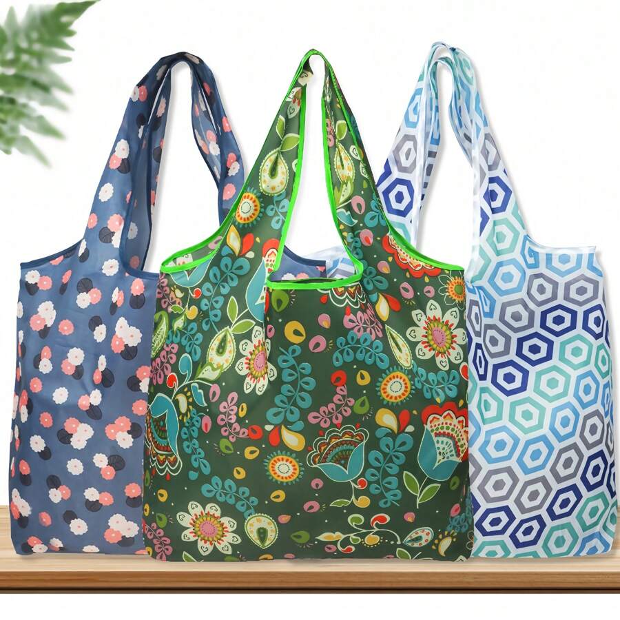 1pc New In Stock Foldable Shopping Bags, Cartoon Supermarket Portable Large Capacity Handheld Grocery Bags, Creative Storage Bags