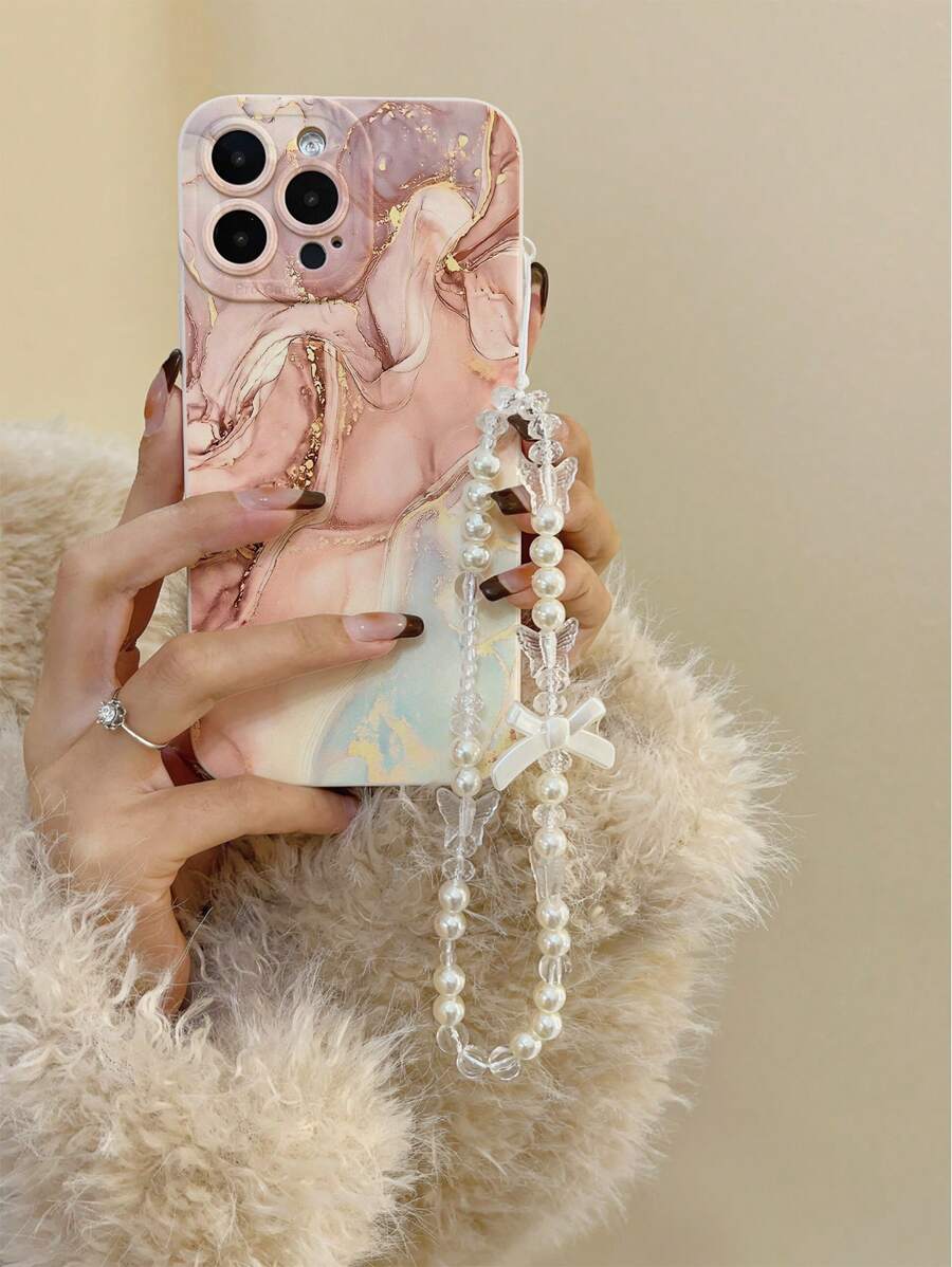 1pc Porous Tie Dye Marble Pattern Painted Thick Anti-Drop Beaded Bracelet Phone Case Protective Cover Compatible With IPhone 16/11/16pro/16plus/16promax/16e/15Promax/13/14/12/XS/XR/7G/8P, Compatible With Samsung Galaxy S25/S25PLUS/S25 Ultra/A16/A36/A26/A56/A50/A12/A32 Waterproof Shockproof Scratch Resistant