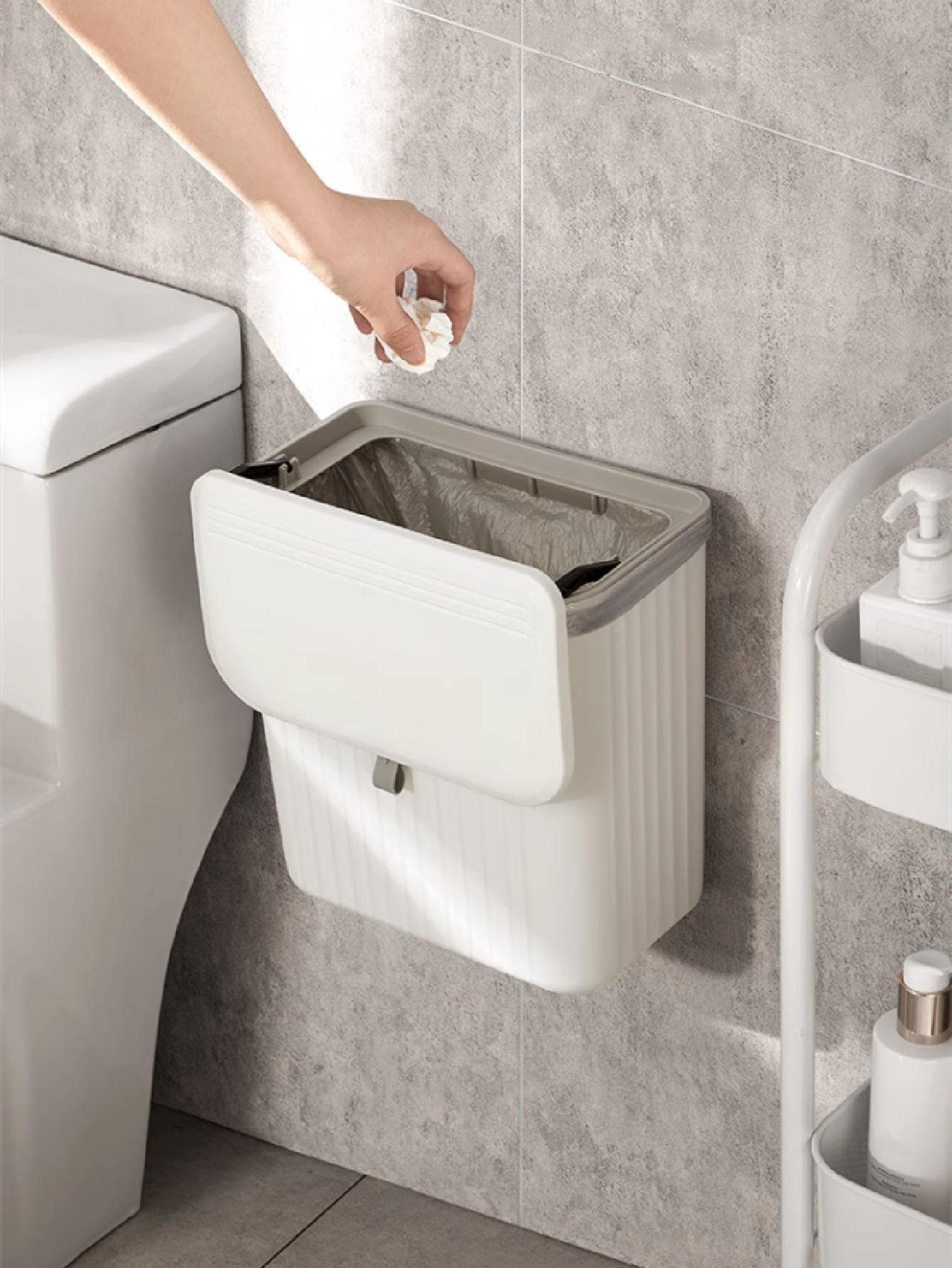 1pc Plastic Striped Wall-Mounted Trash Can, Modern Minimalist Design Home Waste Bin, Suitable For Kitchen And Bathroom,Kitchen,Bathroom,Home,Household Suppliers
