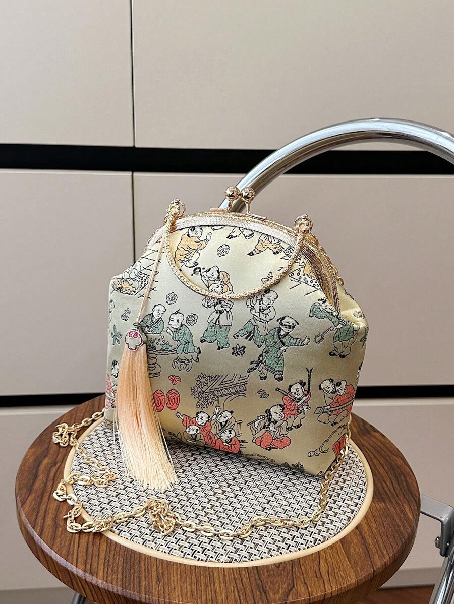 1pc Printed Figure Design Handle Seashell Handbag, Chain Shoulder Crossbody Bag, Daily & Party Phone Pouch