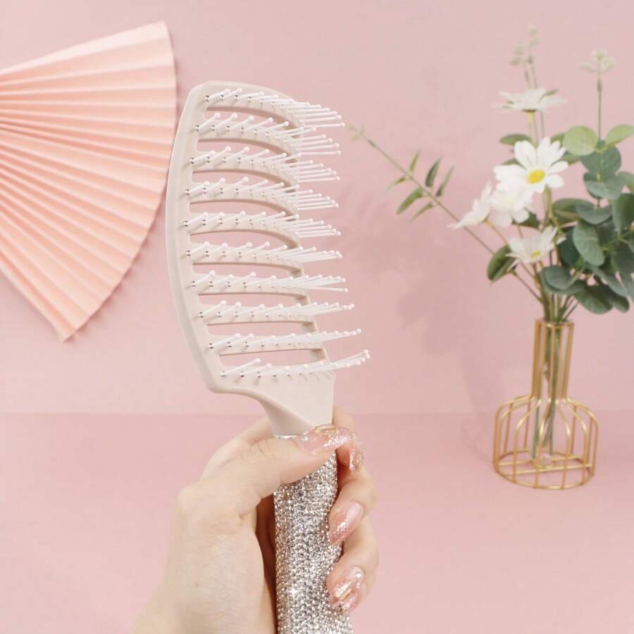 1pc Curved Professional Brush With Glass Diamonds For Fast Blow Drying And Styling, Curved Ventilated Hairbrush, Massaging Hairbrush