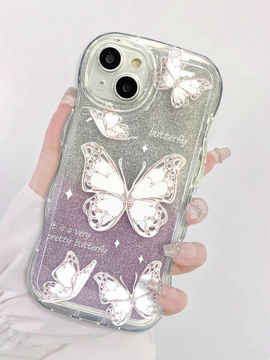 1pc Purple Butterfly Gradient Glitter Tpu Phone Case With Card Slot Compatible With Iphone