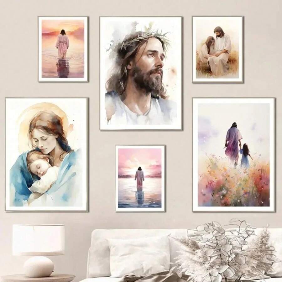 1pc Rellgion Jesus In Prayer Sheep Christian Child Bible Canvas Printing Wall Arts Picture For Living Room Decor Posters Optional Frame ,Wall Art With Frame