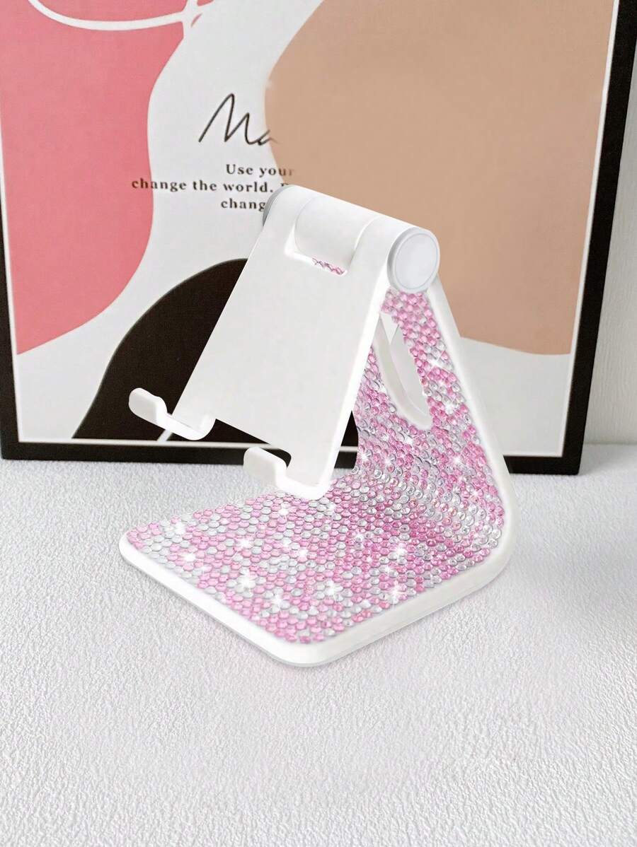1pc Rhinestone-Studded Phone Stand, Adjustable Phone Holder For Desk - Perfect Student Desktop Companion For Slouchy Days, Desk Accessories