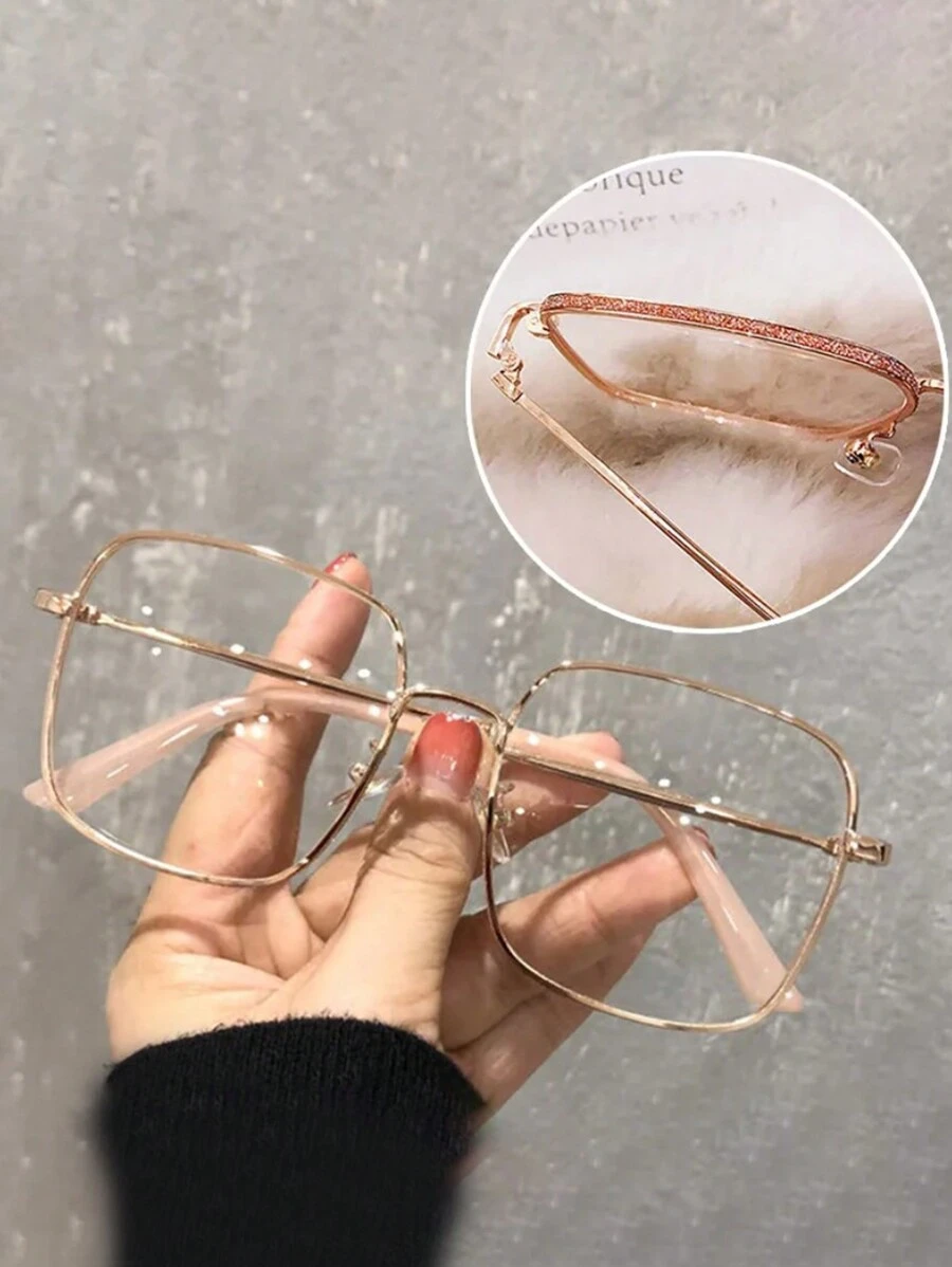 1pc Rose Gold Rectangular Full Metal Frame Fashionable Glasses