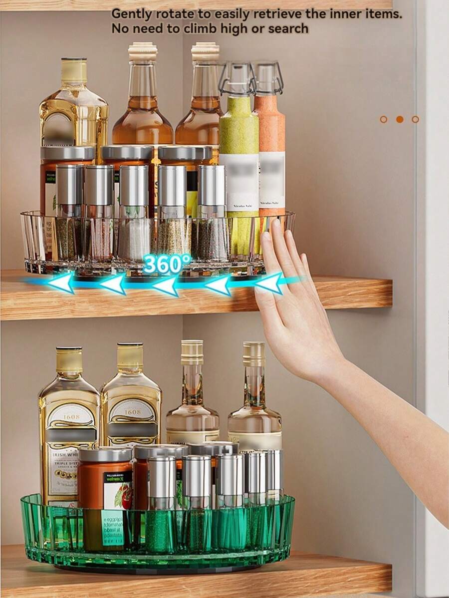 1pc Rotatable Storage Turntable, Room Decor, Home Decor, Bathtub Accessories, Fruit Bowl, Jewelry Organizer, Perfume Organizer, Makeup Organizer, Spice Rack, Striped Shell + Snowflake Pattern Base