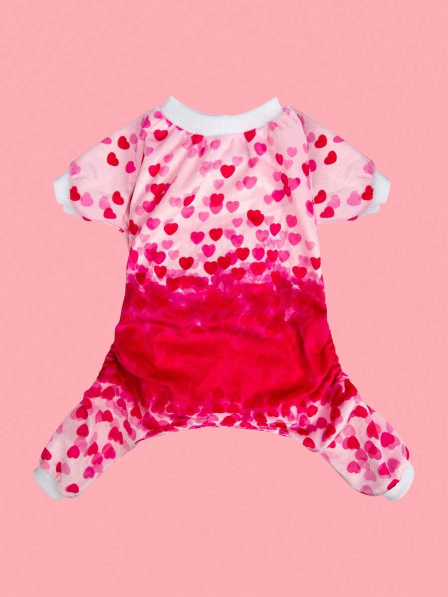 CuteBone Sweet Heart Gradient Pet Four-Legged Pajamas, Warm Autumn And Winter Dog And Cat , Adorable Valentine's Day Pet Home Clothes