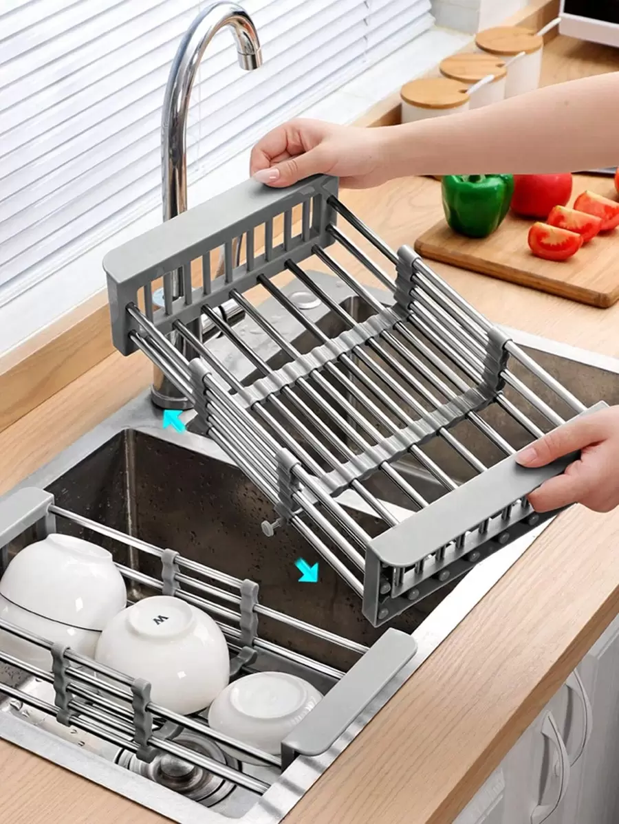 WHICHLIFE 1pc Stainless Steel Drain Rack, Modern Adjustable Dish Drain Basket For Kitchen