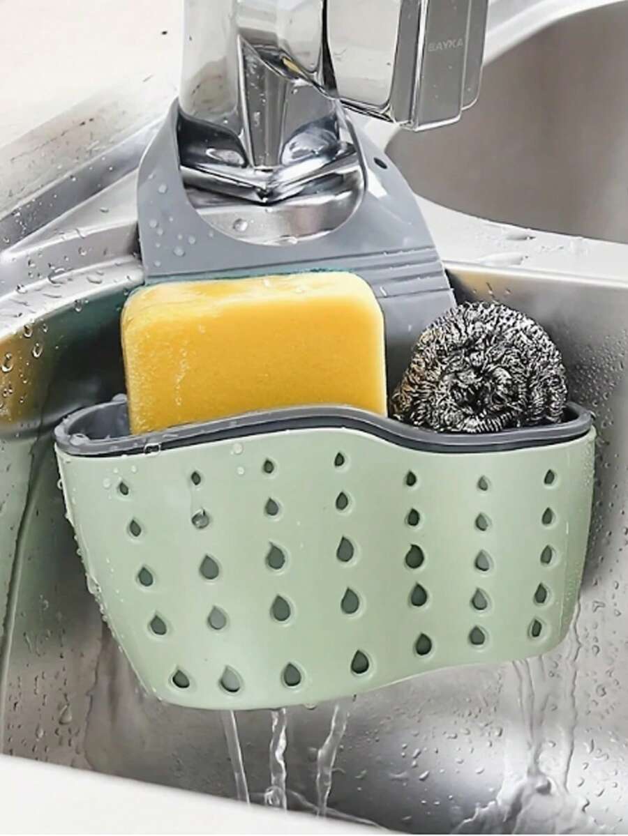 1pc Thicker Double Layer Adjustable Sink Storage Rack - Multifunctional Kitchen Organizer, Sink Hanging Bag, Plastic Drain Basket, Hanging Basket, Drain Rack