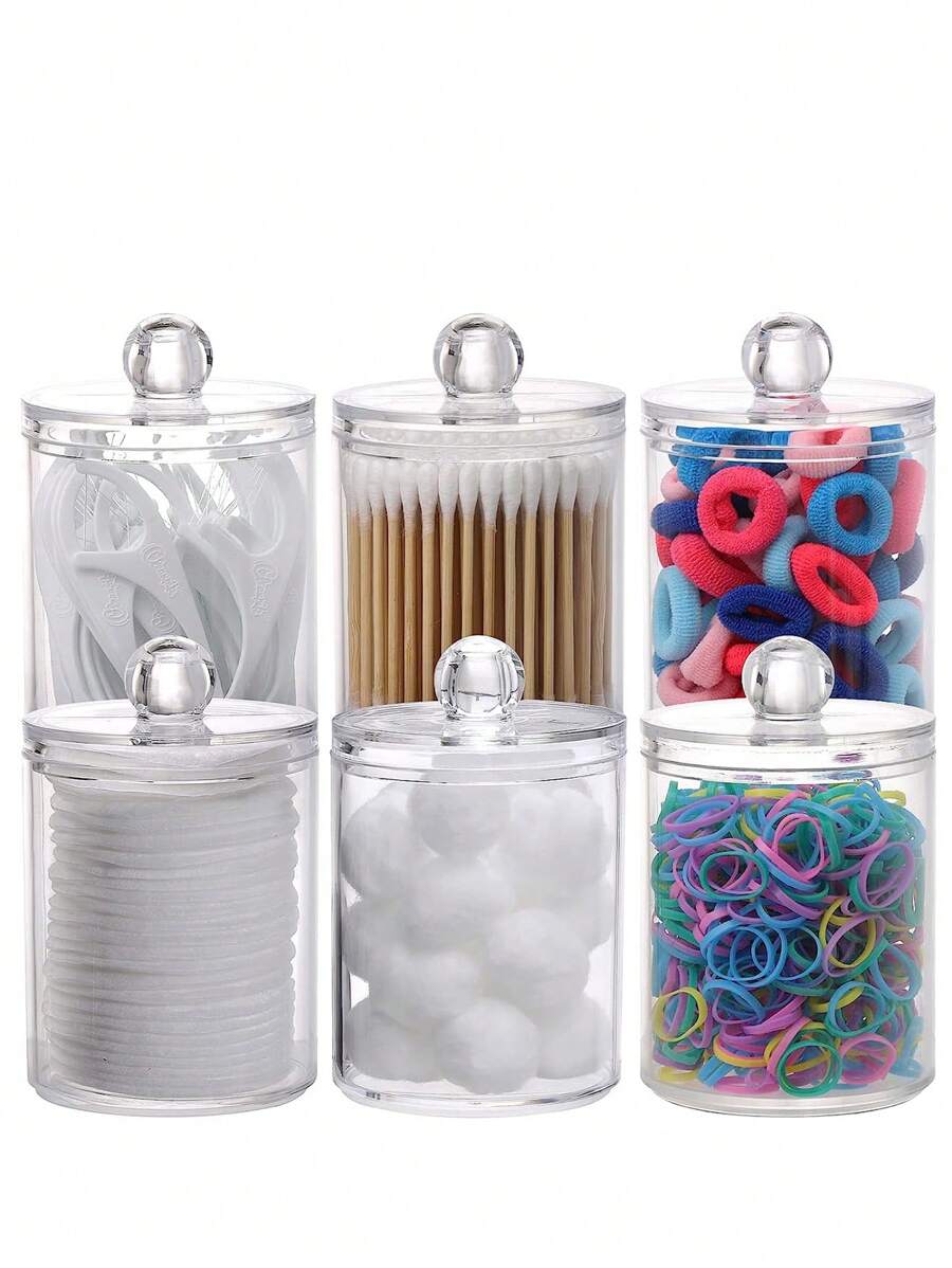 1pc Transparent Acrylic Bathroom Storage Jar For Swabs & Dental Floss, Q-Tip Holder, Bathroom Accessories, Room Decor