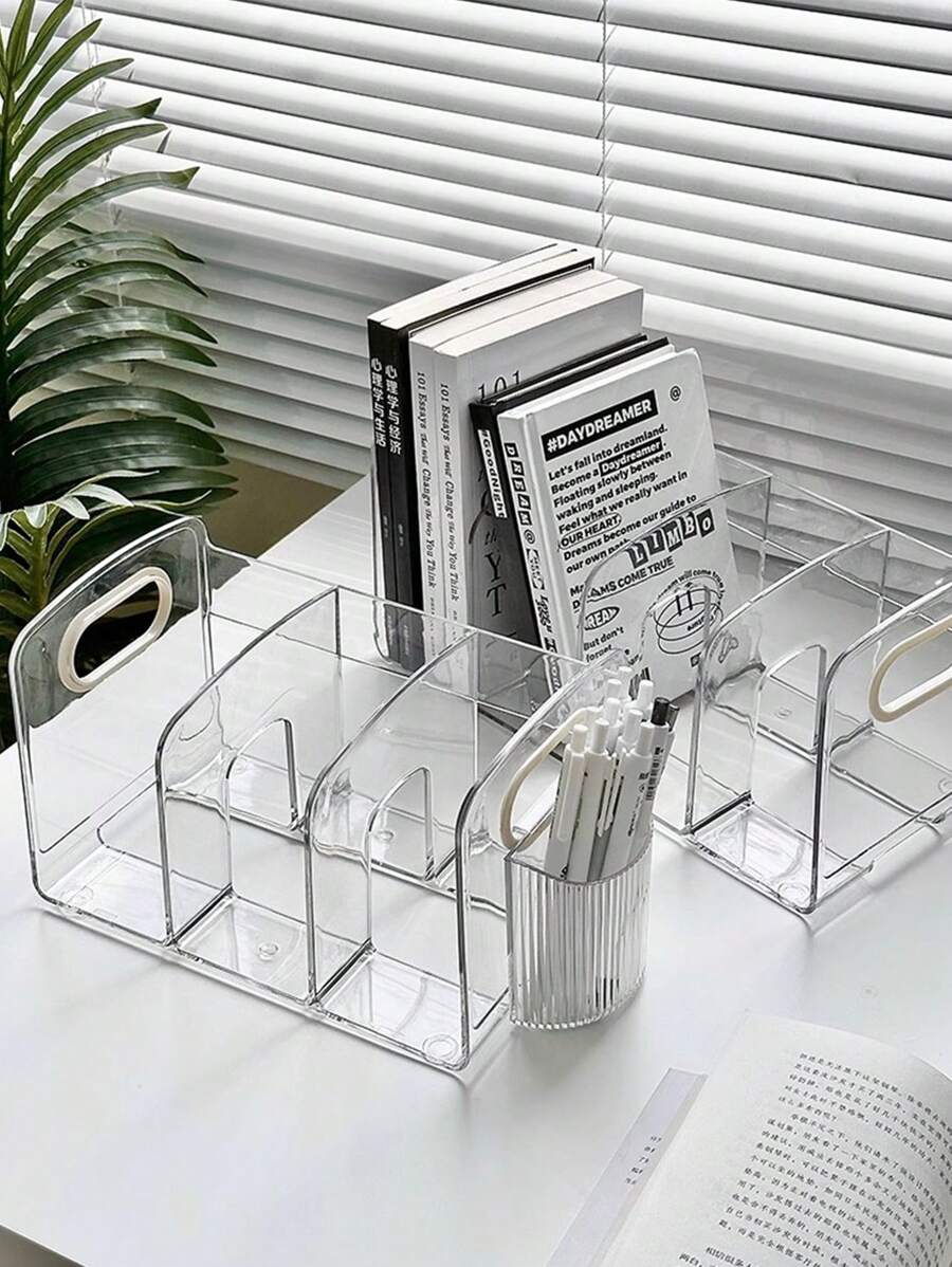 1pc Transparent Desk Organizer For Books,Compartmentalized Storage,Textbooks And Newspapers Are Stored,Suitable For Textbooks, Books, Newspapers, Etc,Suitable For Living Room, Bedroom, Study, Desktop