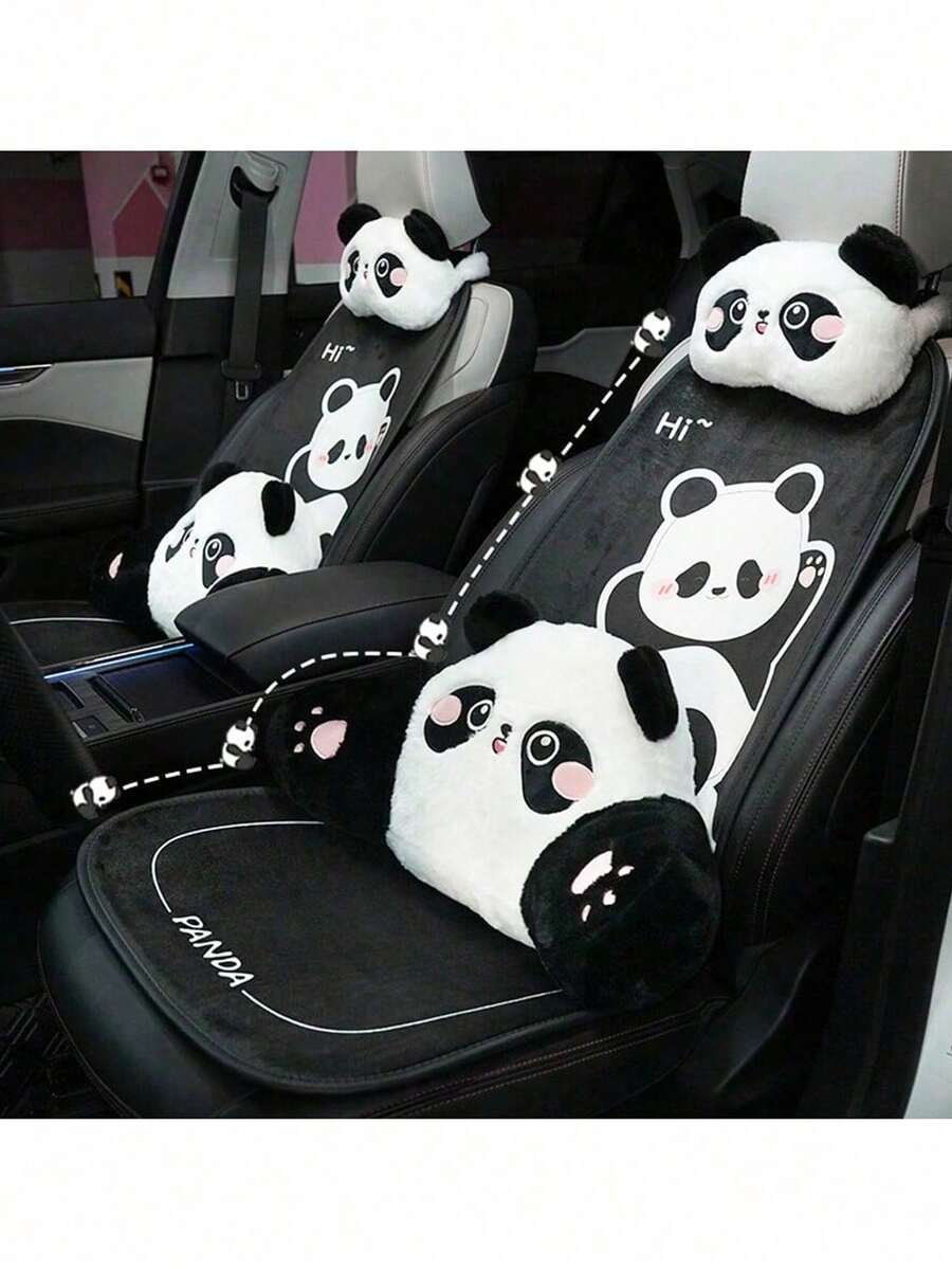 1pc Universal Car Seat Cushion, Plush Warm Panda Design Soft Comfortable Car Seat Protector With Neck Pillow, Suitable For Most Vehicles,Car Accessories