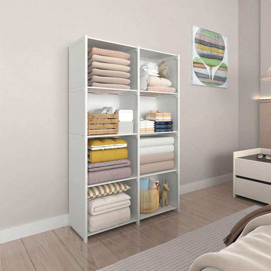 1pc Wardrobe Organizer, Simple Assembly Dust-Proof Clothes Storage Cabinet Rack, Suitable For Rental Home