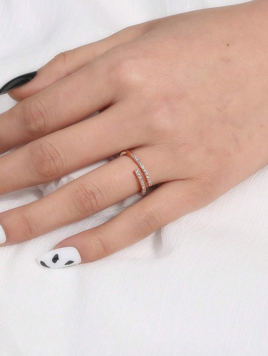 Nooxian 1pc Women's Minimalist Zirconia Copper Open Ring