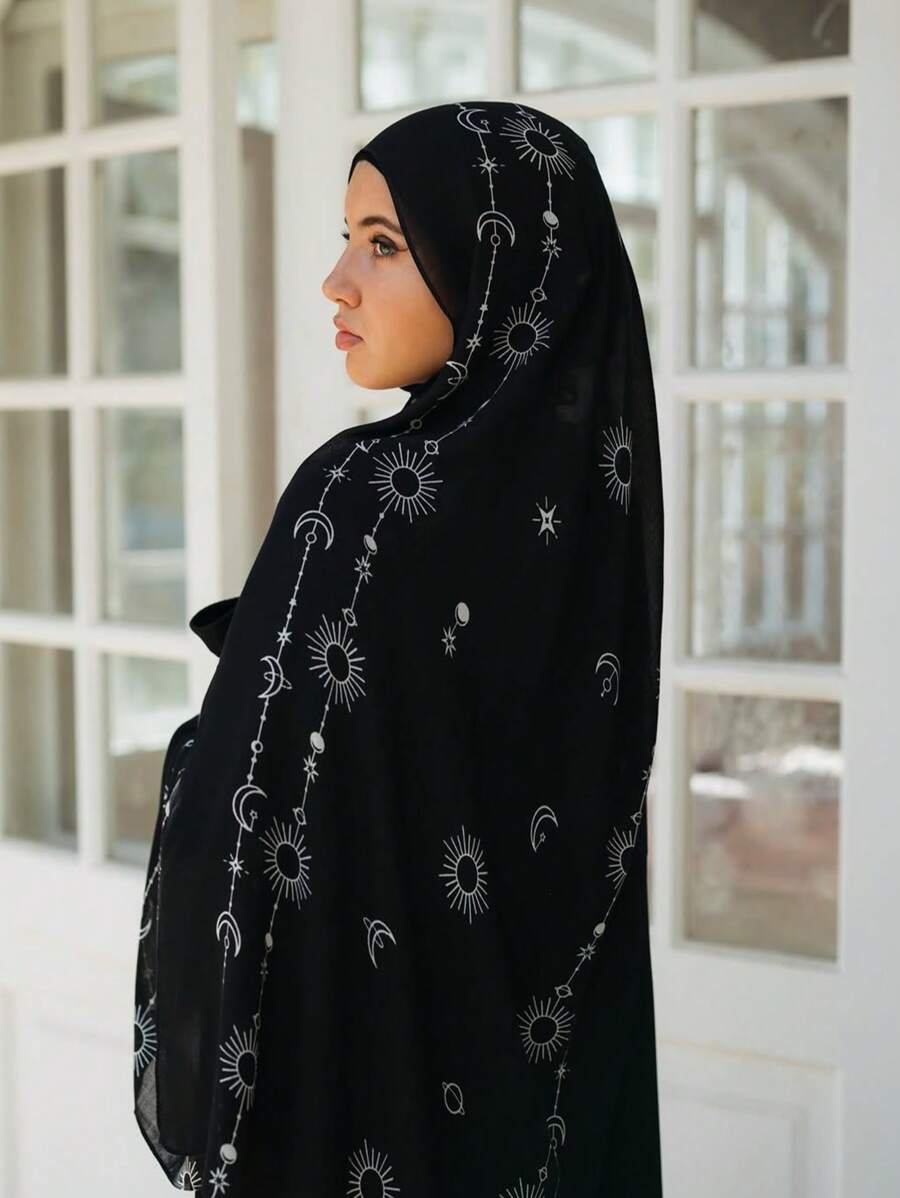 1pc Women's Retro Wave Hijab, Elegant Chinese Ink Painting Pattern Printed Scarf, Suitable For Daily Wear, Beach Cover Up