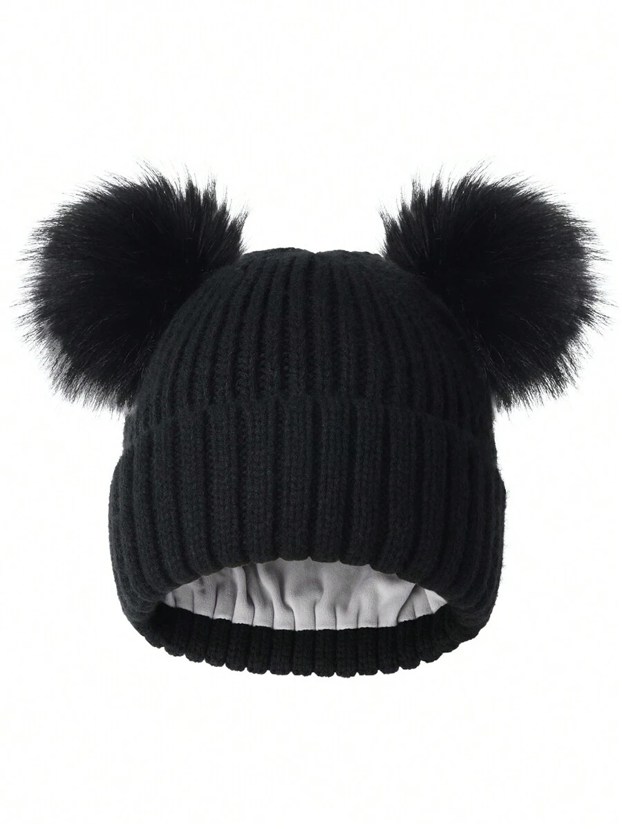 1pc Women's Multi-Color Fashionable Cute Warm Dual Ball Reversible Knit Hat, Suitable For Daily Wear Halloween Winter Fall